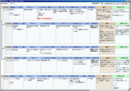 またチェックリストに出力すべき知識を確実にもれなく簡単に出力させることができます。ユーザは、この情報から更に検討を深め、今回の設計に該当する不具合内容については、再発防止策を実施してゆきます。SSMによる知識ベースを構築すれば、再発防止策の実施に必要な指針を関連づけているので、参考にすることができます。