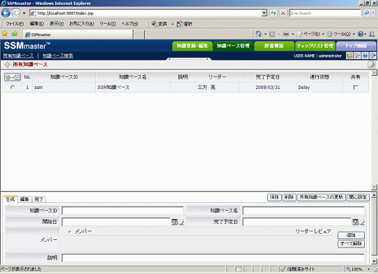 「ユーザ管理」で“知識の登録及び編集”の権限を与えられているユーザは、 SSM知識を登録・編集することができます。